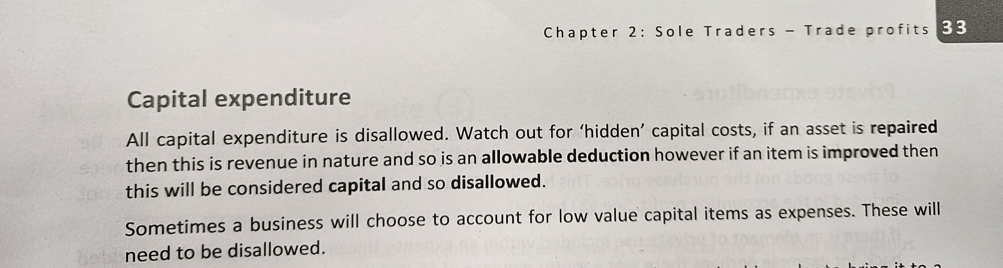 Was wondering why repairs to a new non -current asset were non allowable yet replacing windows, ie improving them unnecessarily were not?