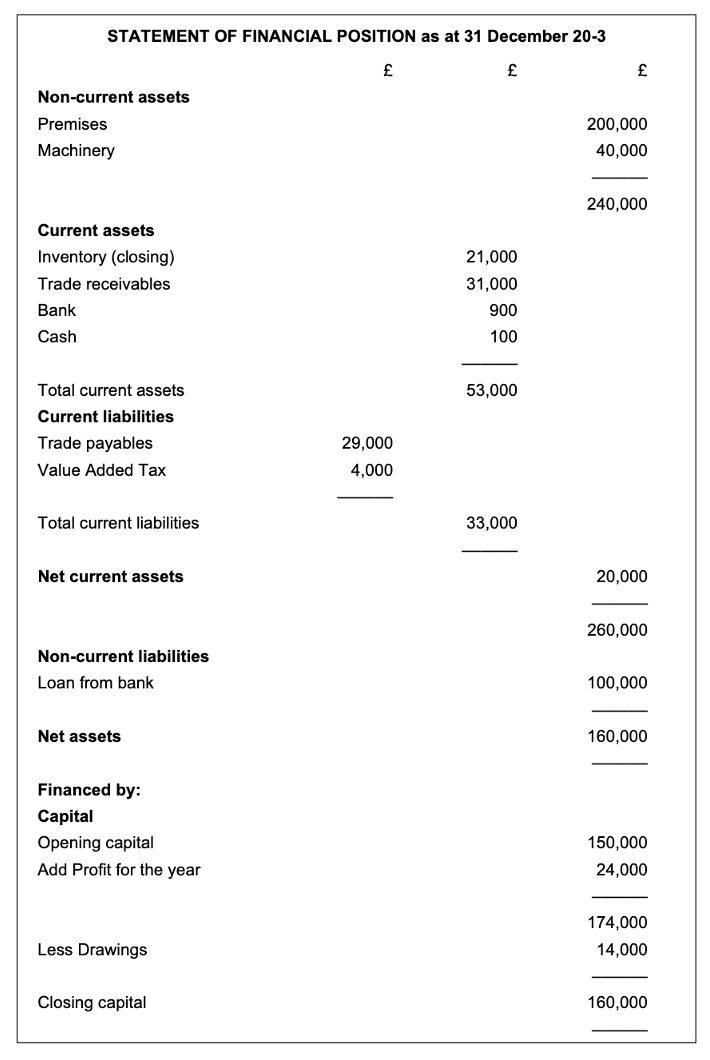 I am asking, the photo I uploaded showing a statement of financial position has 3 columns (with £ signs). You are saying the three columns relate to assets, liabilities and capital?