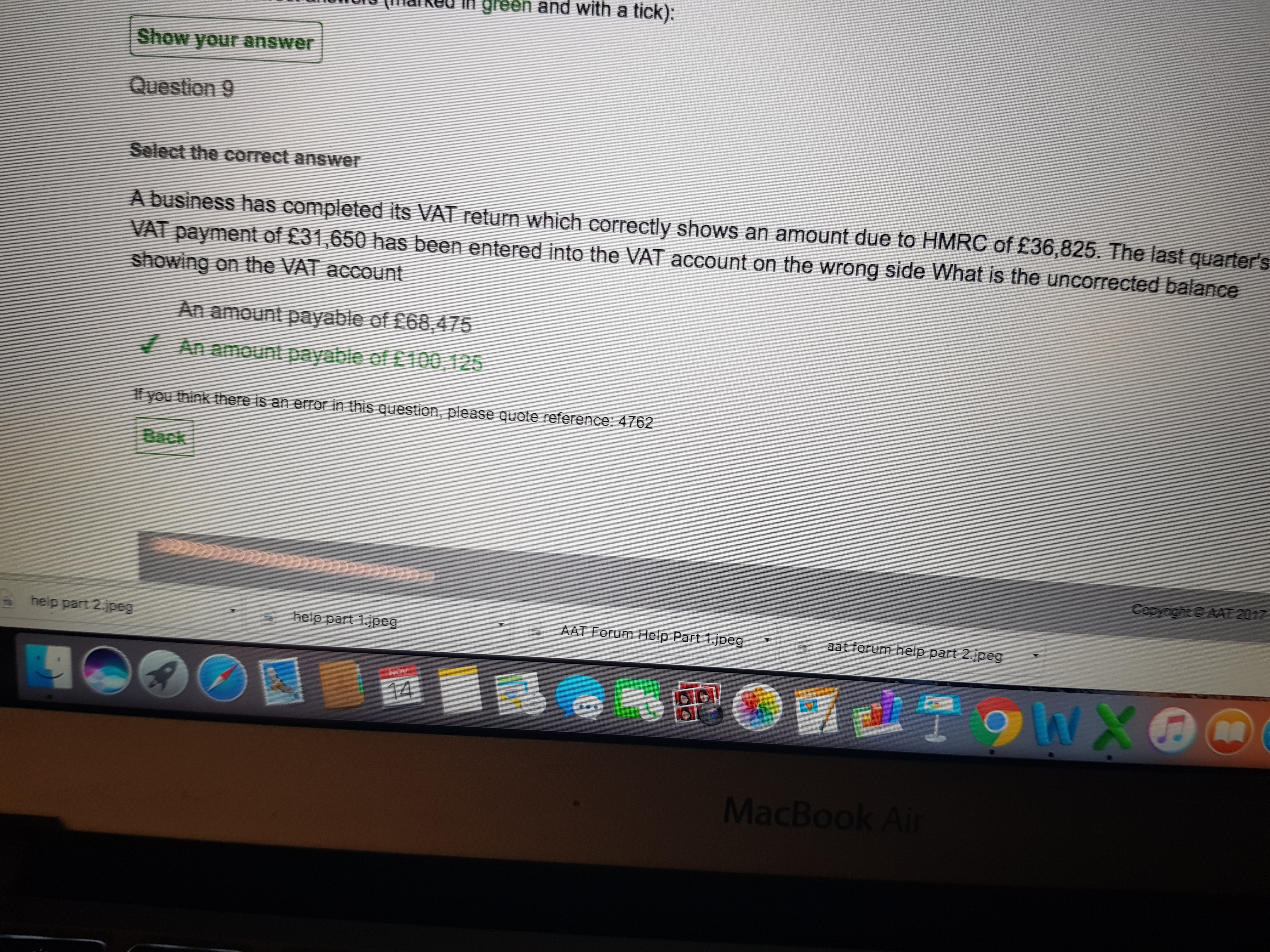 When you add the current VAT Liability for the quarter you get a total VAT Liability of £100,125. (£63,300 + £36,825)