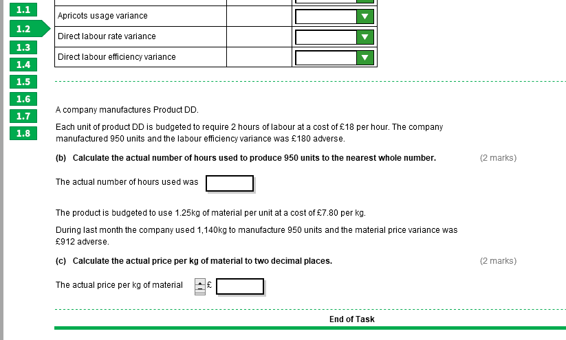 c) 1140*7.80 - 1140* P = -912 Standard price for material used - Actual price for material used = price variance