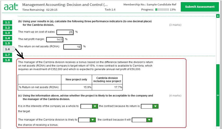 According to (b) Cambria's manager is hoping for a bonus based on 18%, so a project which brings this down to 17.7% looks bad to him/her1 -