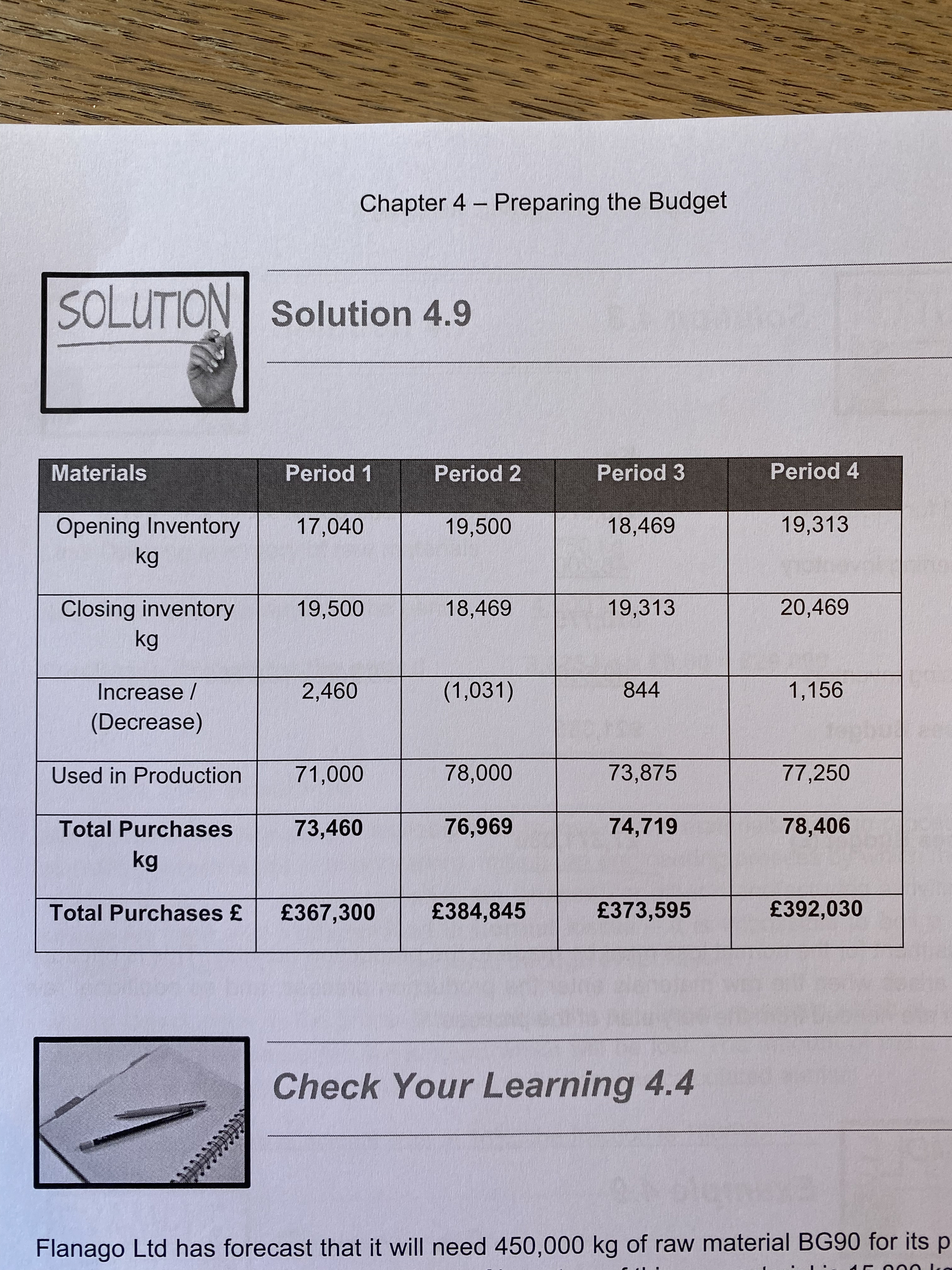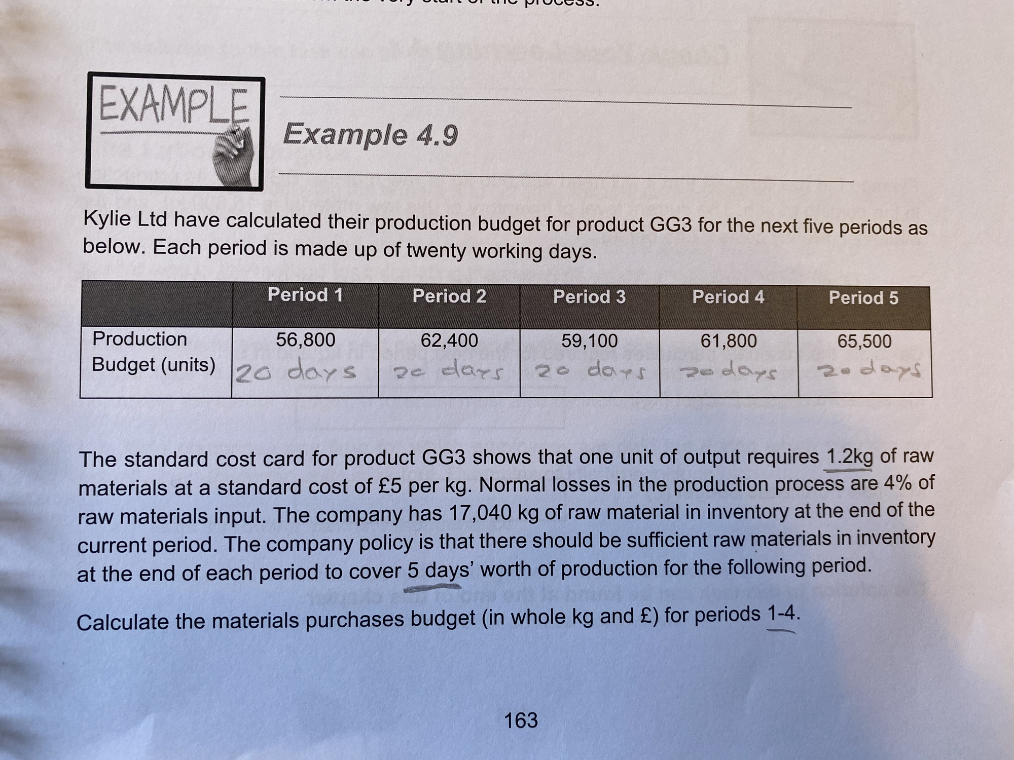 My understanding is that I would take the figure from period 2’s production budget, then x this by 5/20 and finally times it by 1.2 kg which would give me 18,720.